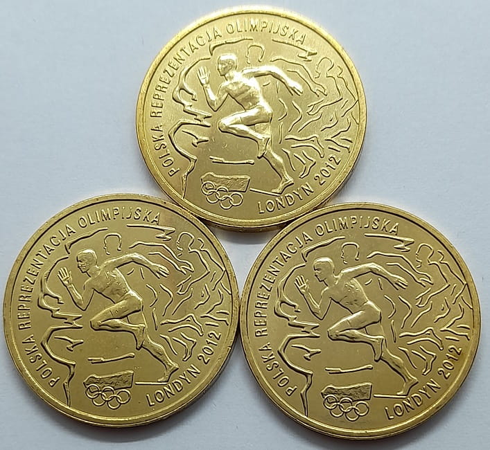 2 złote Londyn 2012 Polska Reprezentacja Olimpijska 2012 r. - moneta okolicznościowa 2 zł Nordic Gold NG NBP, producenta Mennica Polska S.A., z serii Igrzyska Olimpijskie, stempel zwykły, moneta w kapslu ochronnym, stan zachowania: menniczy standard bicia