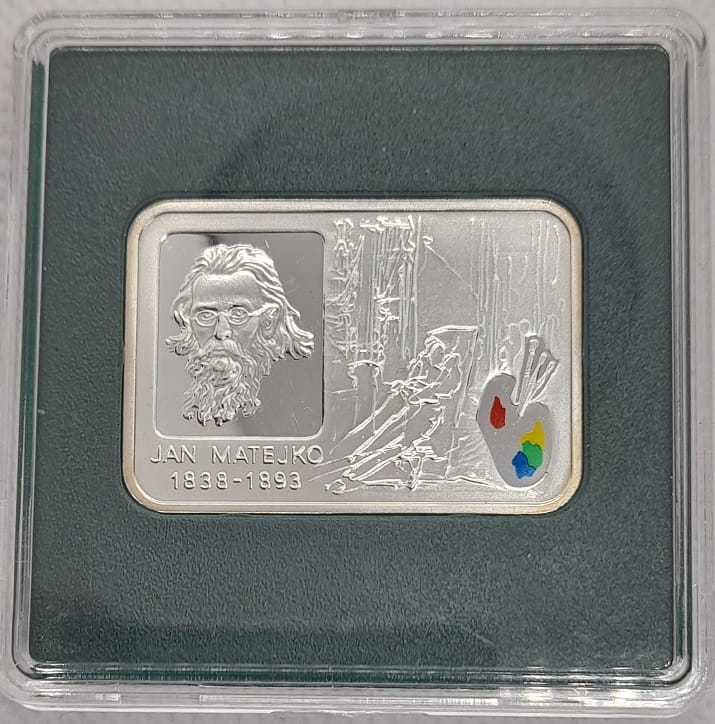 Srebrna moneta kolekcjonerska 20 złotych NBP, producent Mennica Polska S.A., z serii Polscy Malarze XIX i XX w., numer 2 z 13 w serii, stempel lustrzany, kolorowa emalia, moneta w kapslu ochronnym, stan zachowania L/L, real foto