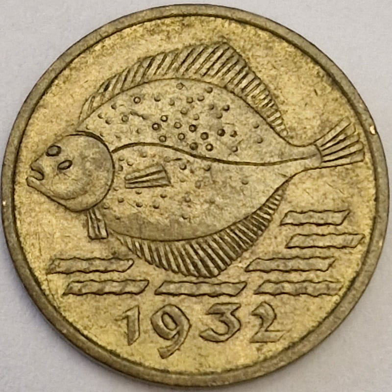 Na awersie u góry stylizowany wizerunek ryby flądra, którą u dołu otaczają stylizowane fale w kilku rzędach. Poniżej przy krawędzi monety rok jej emisji 1932